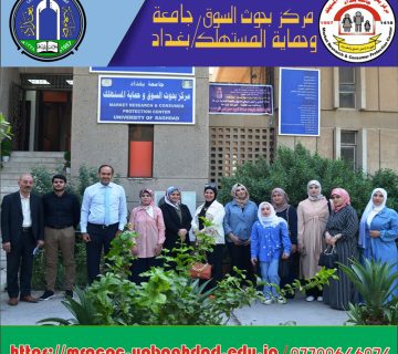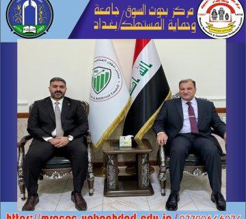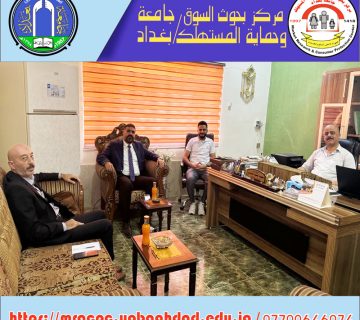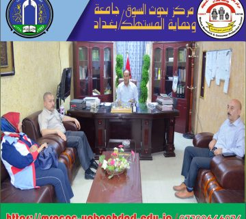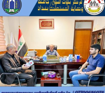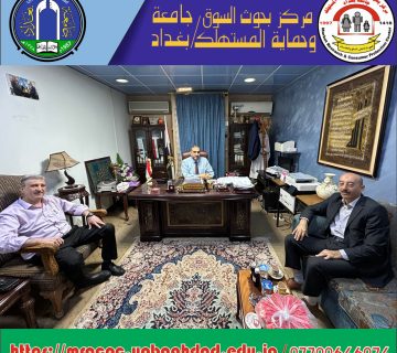 The Center for Market Research and Consumer Protection is represented by the Director of the Center (Assistant Professor Dr. Mahmoud Abdullah Al-Khafaji) and (Assistant Professor Dr. Salal Abdullah Hussein) The Scientific Affairs Division of the Center is responsible for a visit to the Faculty of Administration and Economics of the University of Baghdad on Tuesday, the 23rd of April 2024, aimed at scientific cooperation with the College on various aspects of research, courses, seminars, conferences, etc., which will contribute to academic development and community service.
